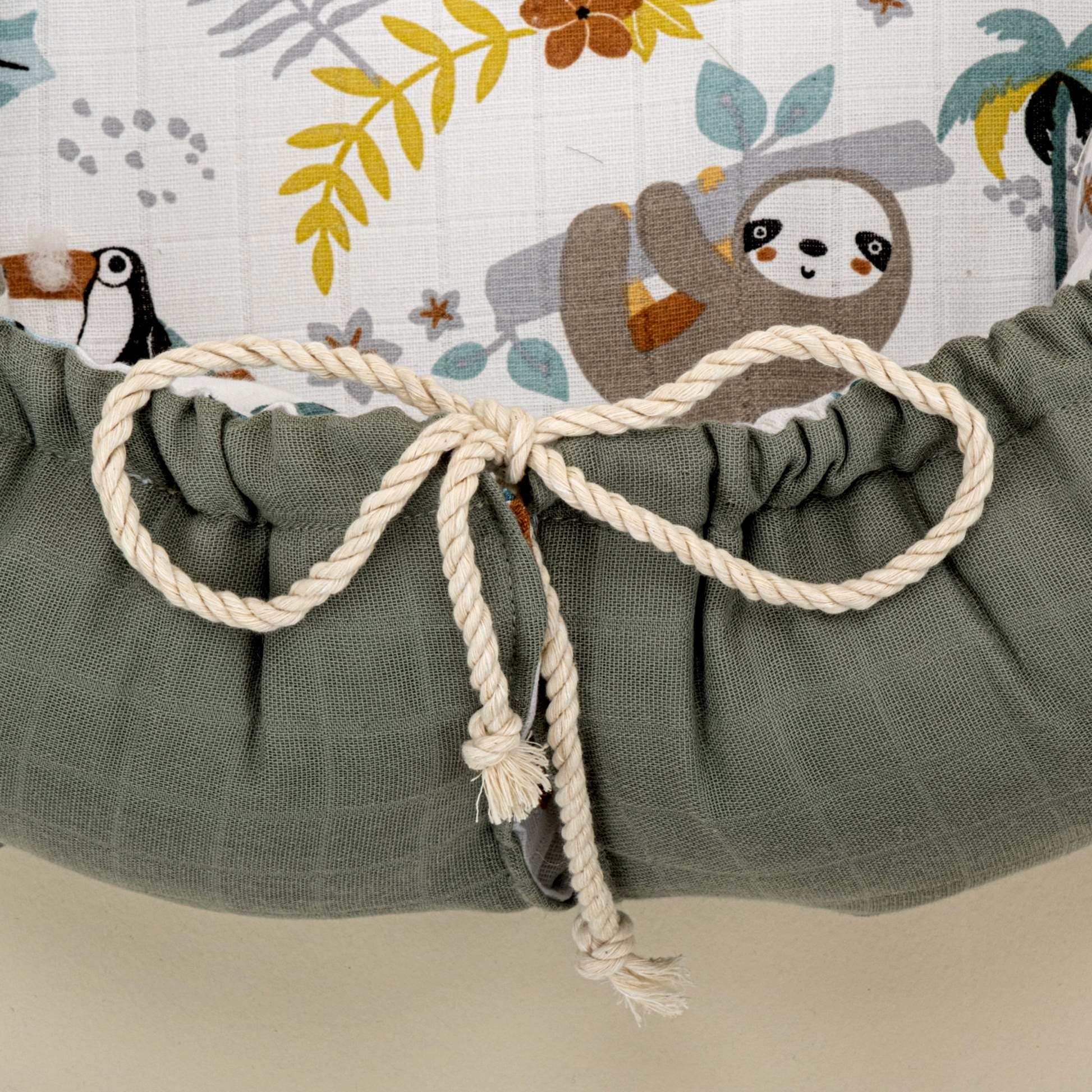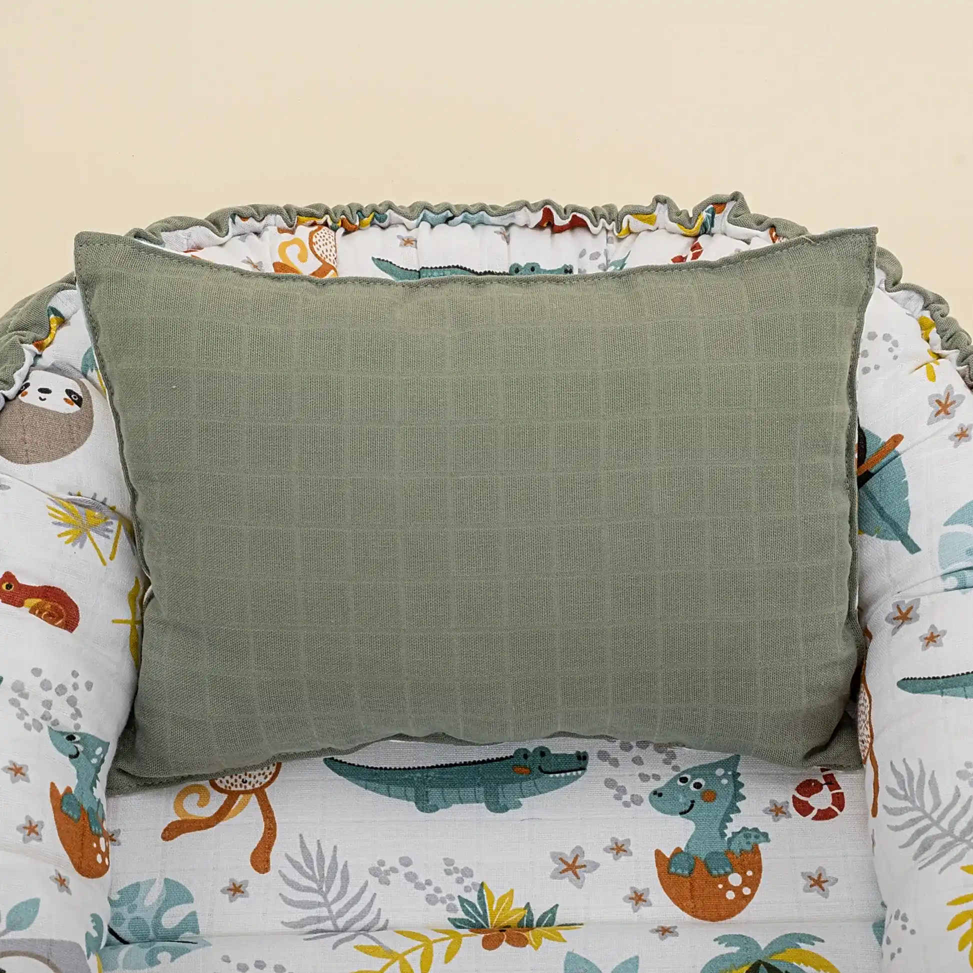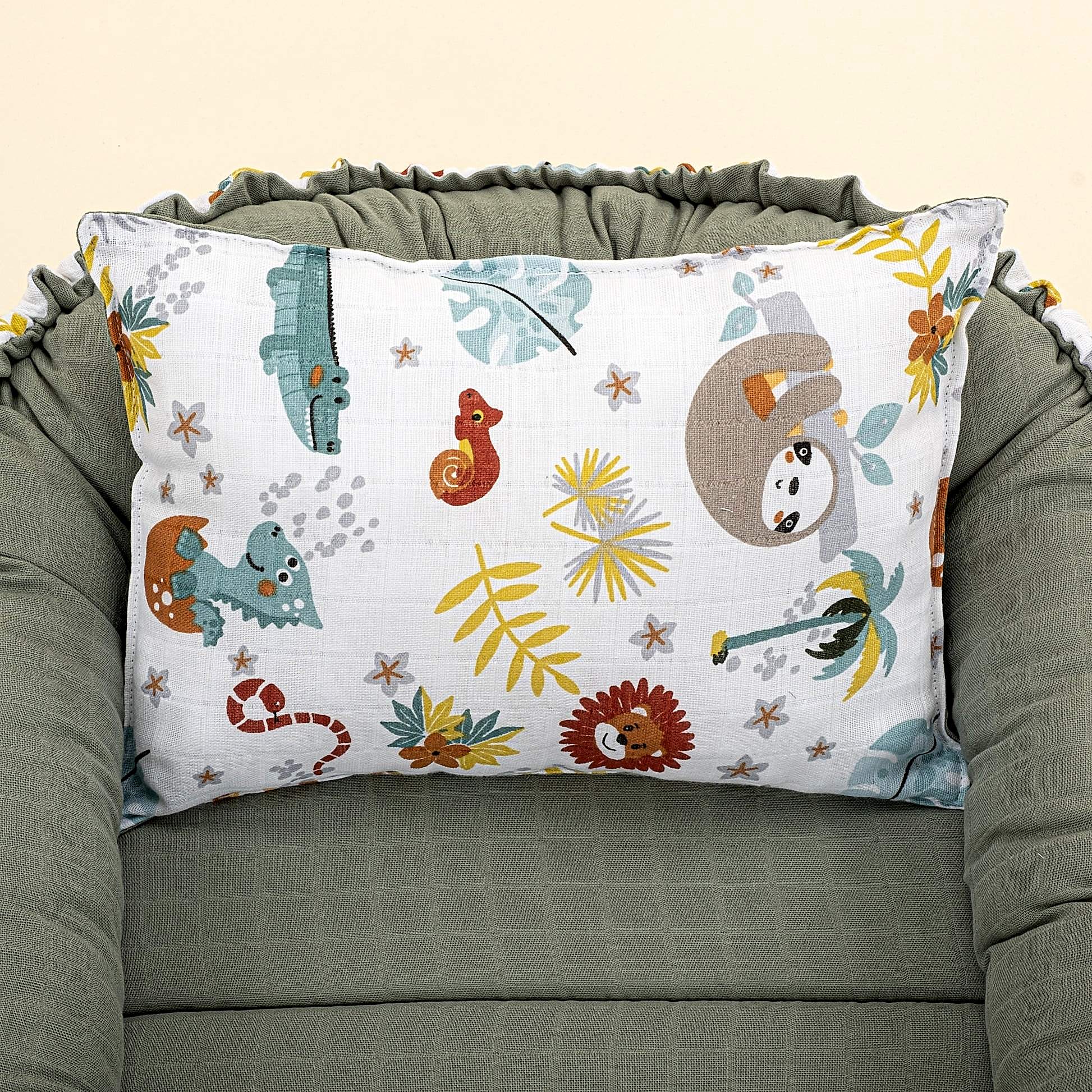 Babynest ve Yastık - Çift Taraflı - Haki Muslin - Hayvanat Bahçesi