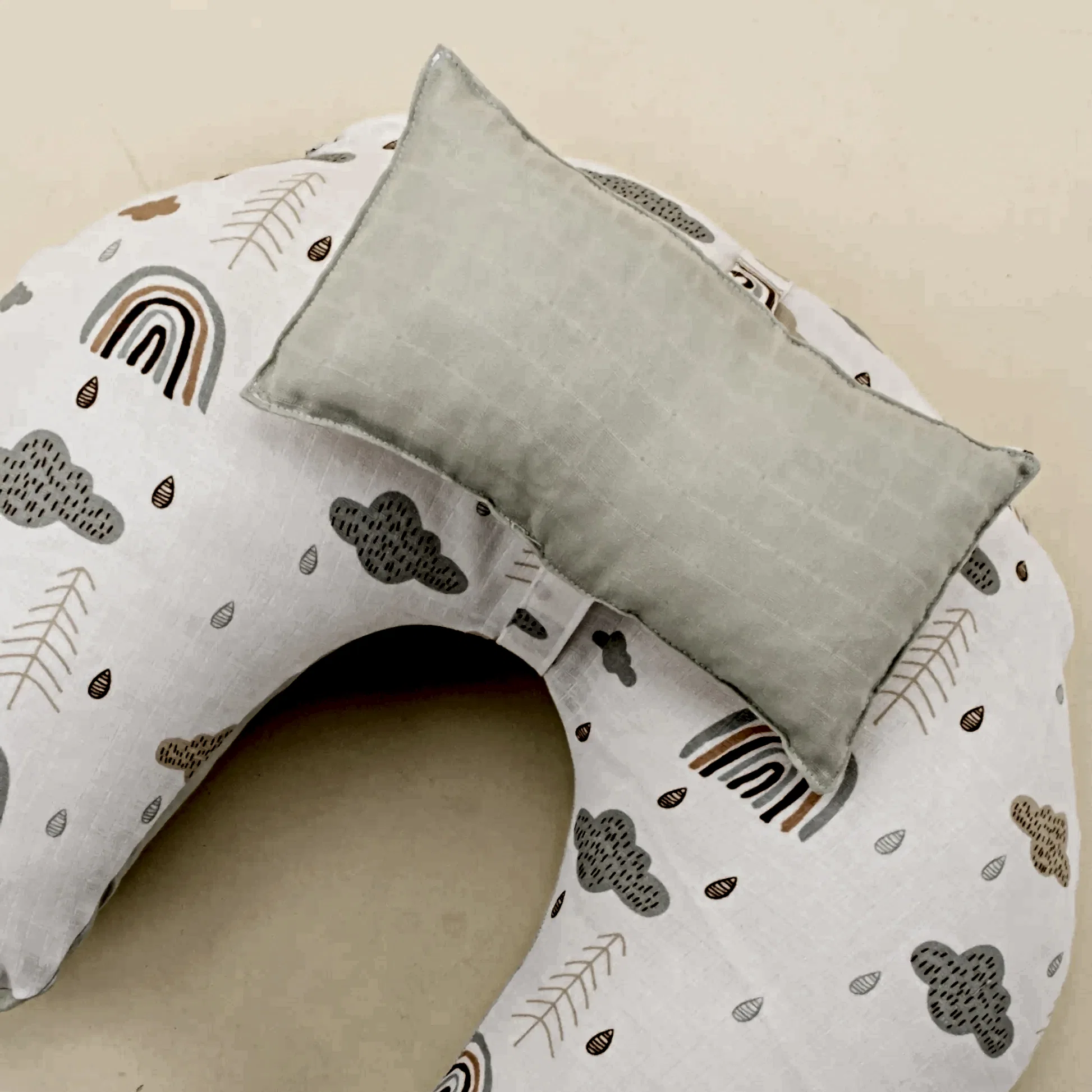Emzirme Yastığı - Çift Taraflı - Açık Yeşil Muslin - Yeşil Gökkuşağı