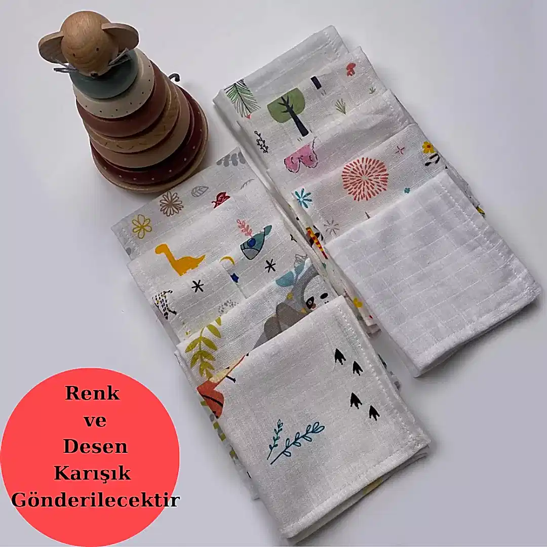 İndirimli Ürün - 10'lu Muslin Ağız Mendili Set - Karışık Desenli